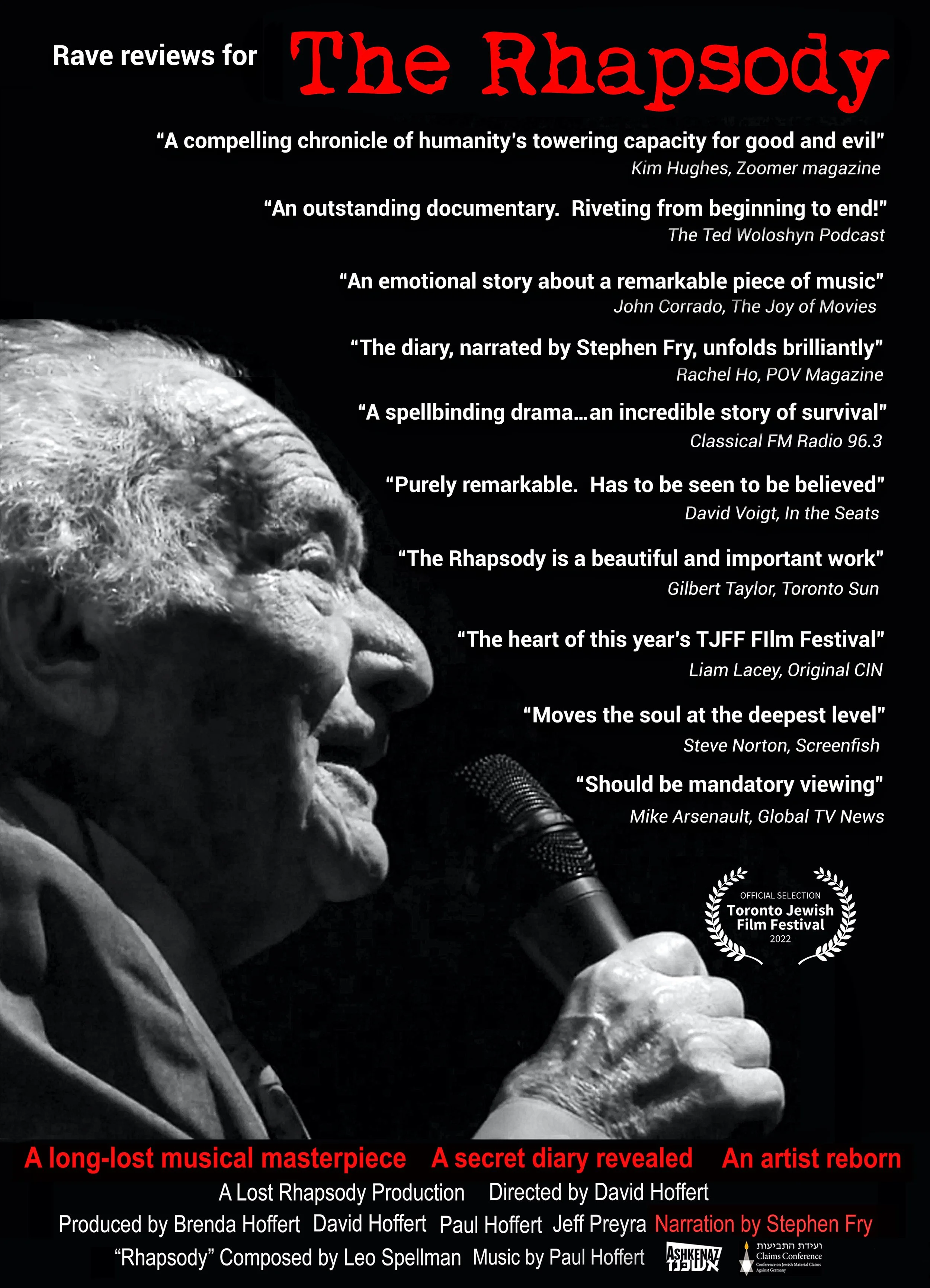 The Rhapsody is a documentary that unfolds like a thriller. It is the astonishing story of composer Leo Spellman, a ninety-eight year old Holocaust survivor who sets out on a riveting and emotional journey towards artistic liberation.